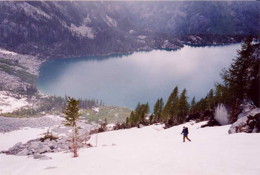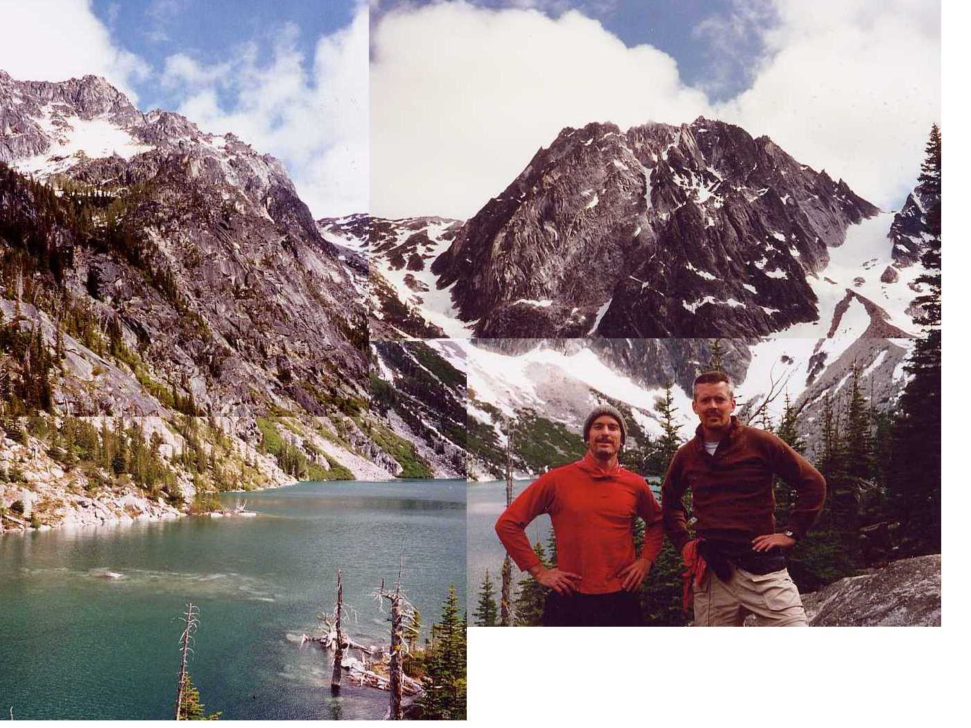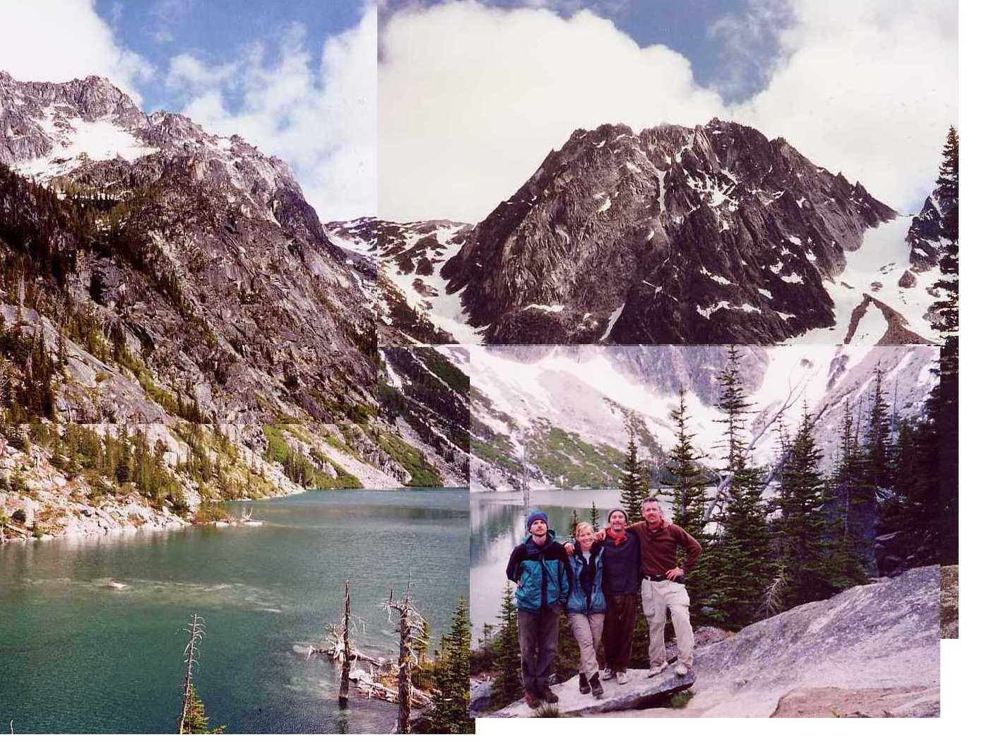 Our next goal was Colchuck Lake. With Dragon Tail behind us and Aasguard Pass in the middle. Here's 4 Photos put together to show the scene. |